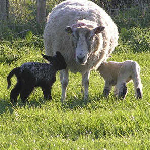 The sheep live out doors all year, lambing in late April to early May in the meadows where they spend the summer.